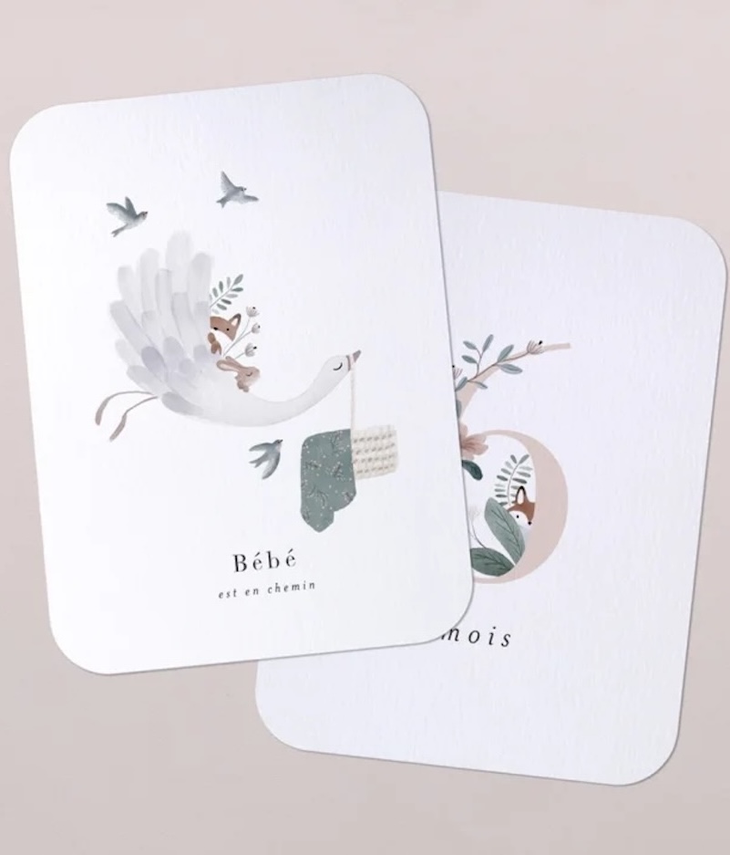 Cartes étapes bébé – un joli moyen d’immortaliser chaque moment clé de la première année ! Des designs doux et modernes pour garder de précieux souvenirs mois après mois.