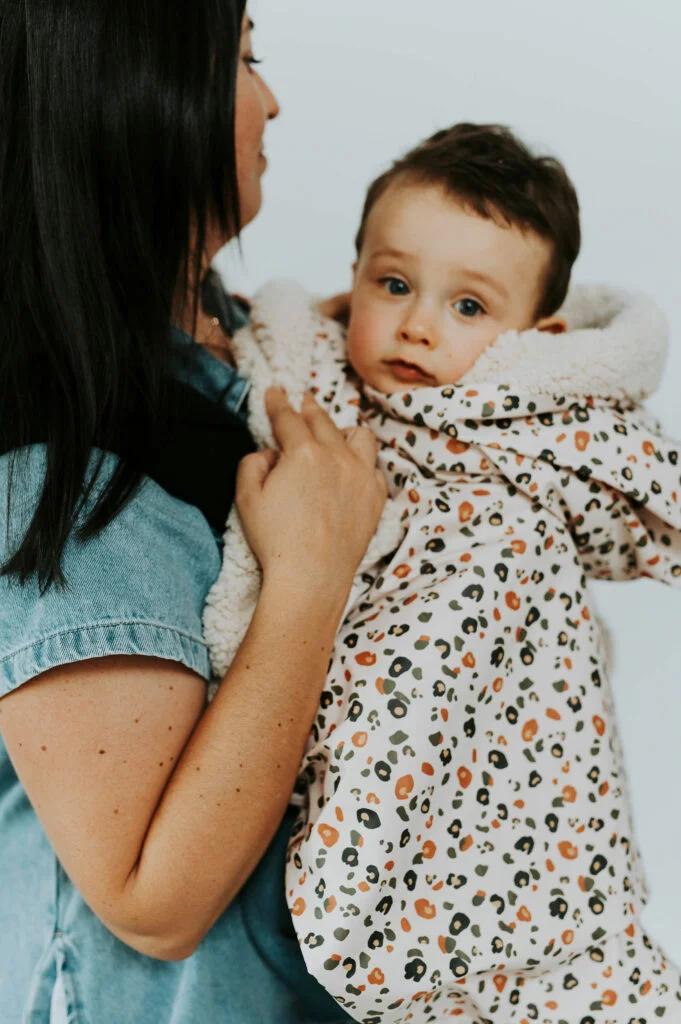 La peau des bébés est fragile. Le poncho de pluie léopard est conçu avec :