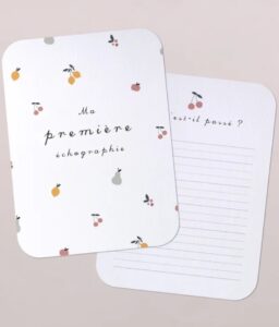 Au verso, vous pourrez y noter vos émotions, vos sensations et vos petits bonheurs — comme un véritable journal de grossesse à conserver précieusement.