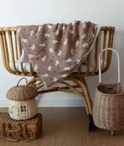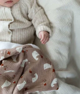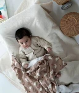 Cadeau de naissance idéal, cette couverture utile et chic peut être personnalisée avec le prénom de bébé ou avec un petit mot d’amour de votre choix.