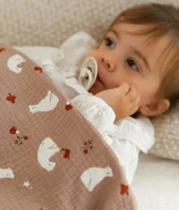 Elle est confectionnée en France à partir de coton certifiés sans substance nocive ou irritante, et le doudou conforme à la réglementation européenne REACH pour le bien-être de l’homme et de l’environnement.