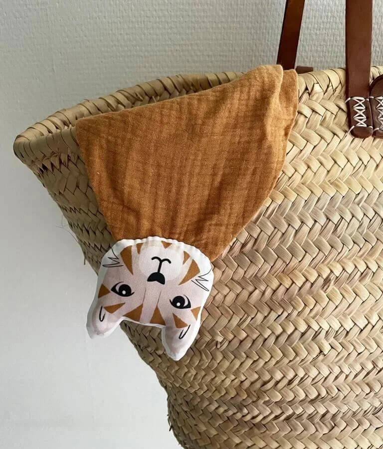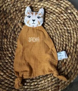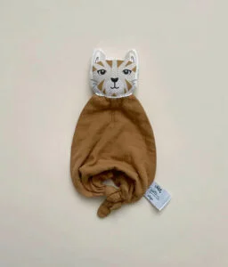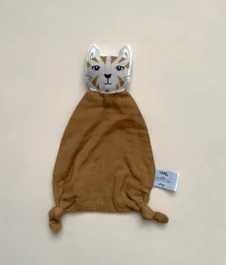 Offrez à bébé un compagnon doux et réconfortant avec ce doudou Chat en double gaze camel Carotte & cie.