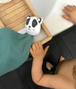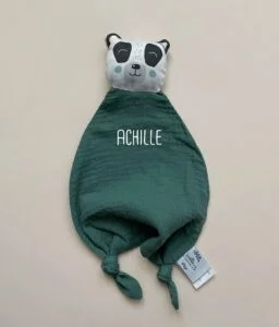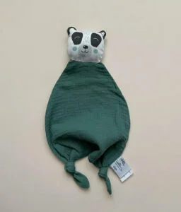 Offrez à bébé un compagnon doux et réconfortant avec ce doudou Panda en double gaze vert eucalyptus Carotte & cie.
