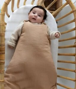 La gigoteuse d’été est un essentiel du trousseau de naissance idéal. Pour l’été et les fortes chaleurs, préférez une gigoteuse légère sans ouate à l’intérieur qui enveloppe et rassure bébé sans lui tenir trop chaud.