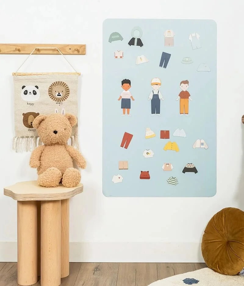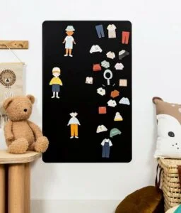 Avec le jeu magnétique « Silhouettes à habiller – Garçons », les enfants peuvent s’amuser à mixer et assortir vêtements et accessoires pour créer des combinaisons uniques grâce à la magie des magnets.