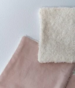 • Composées d’un côté d’éponge écru super absorbante 100% coton, et de l’autre côté d’un coton tout doux couleur rose nude.
