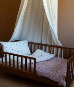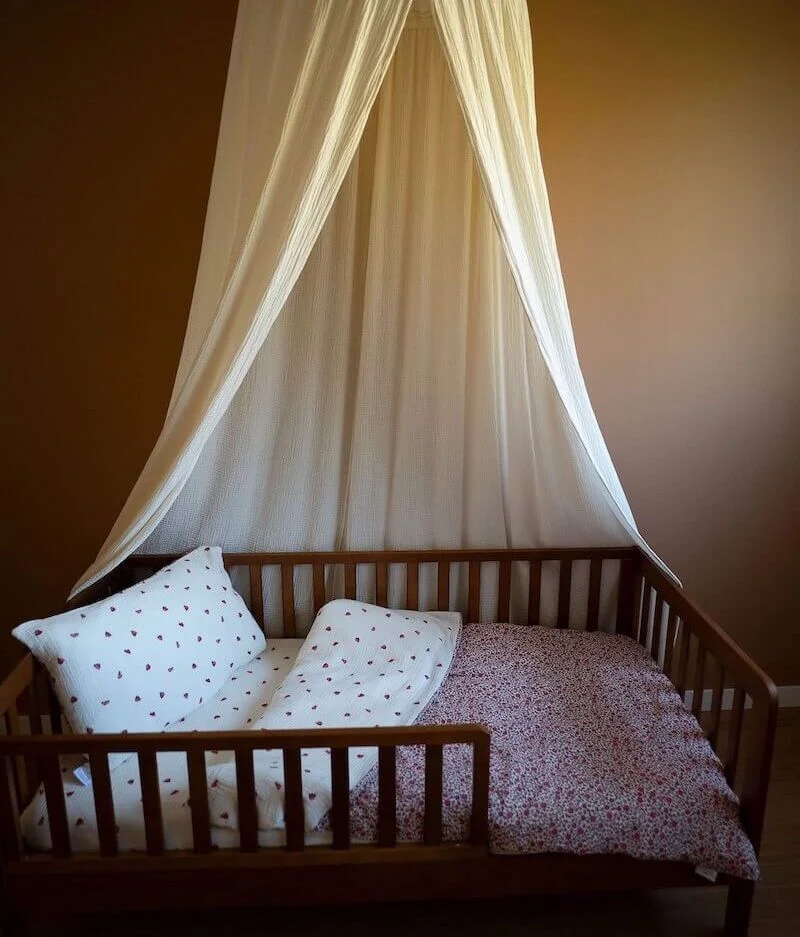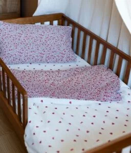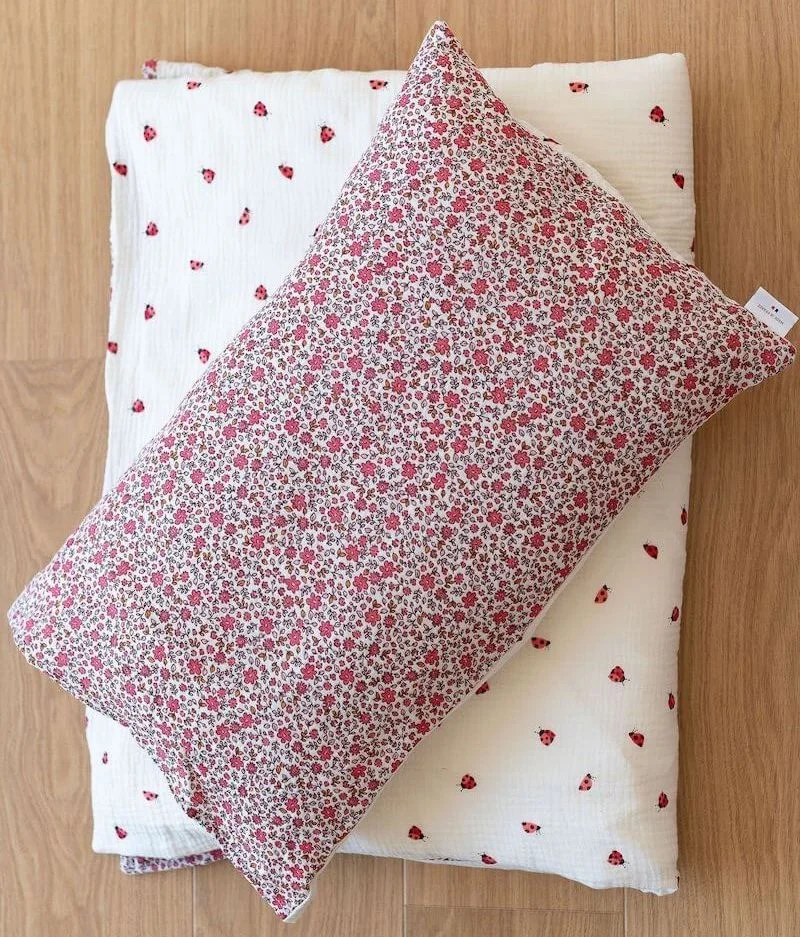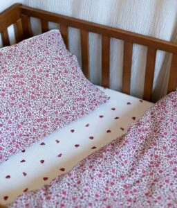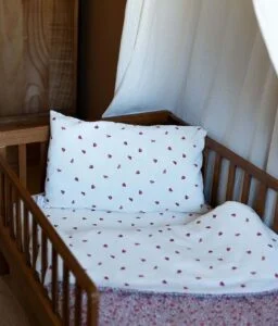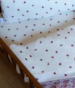 Notre parure de lit est également réversible et permet de changer de style selon son envie. Composé de double gaze de coton léger et aérien, elle offrira à votre bambin un toucher doudou ; cette matière naturelle et respirante évite également l’excès de chaleur.