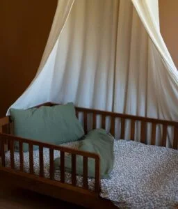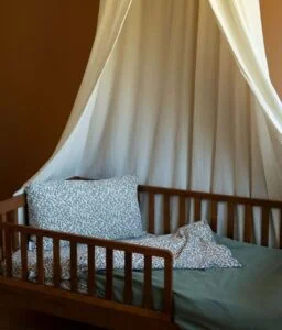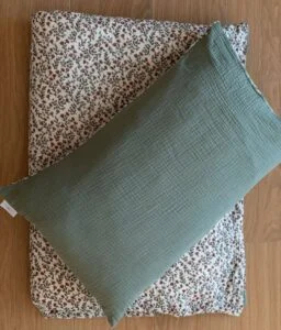 Notre parure de lit est également réversible et permet de changer de style selon son envie. Composé de double gaze de coton léger et aérien, elle offrira à votre bambin un toucher doudou ; cette matière naturelle et respirante évite également l’excès de chaleur.