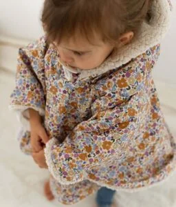 Notre poncho est entièrement fabriqué en France. Il est composé à l’extérieur d’un imperméable et à l’intérieur d’un sherpa tout doux garantis sans substance nocive ou irritante, il conviendra parfaitement à la peau sensible de bébé et sera respectueux de notre environnement.