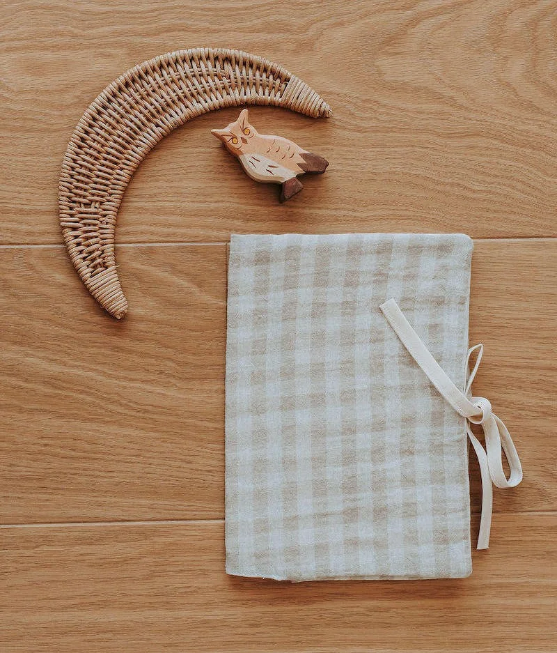 • Double gaze de coton vichy galet avec un biais ivoire à nouer certifiés sans substance nocive ou irritante.