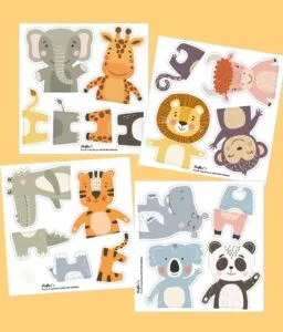 Avec 20 pièces représentant 10 animaux différents – girafe, éléphant, singe, lion, crocodile, tigre, hippopotame, koala, panda et buffle – votre enfant peut créer des combinaisons originales et amusantes comme le KOA-DILE ou la TI-RAFE 🐯.