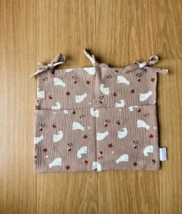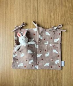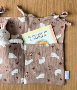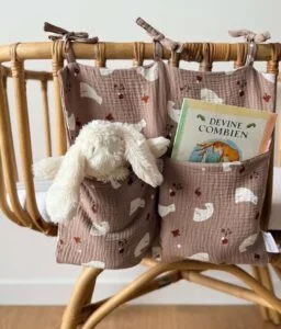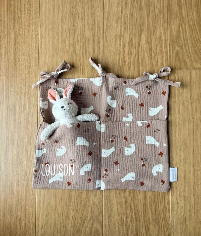 Craquez pour notre range doudou, cet accessoire déco s’attache au lit de votre bébé ou se suspend à une jolie patère pour y déposer toutes ses petites affaires à avoir sous la main : livres, tétines, pyjama ou encore son doudou.