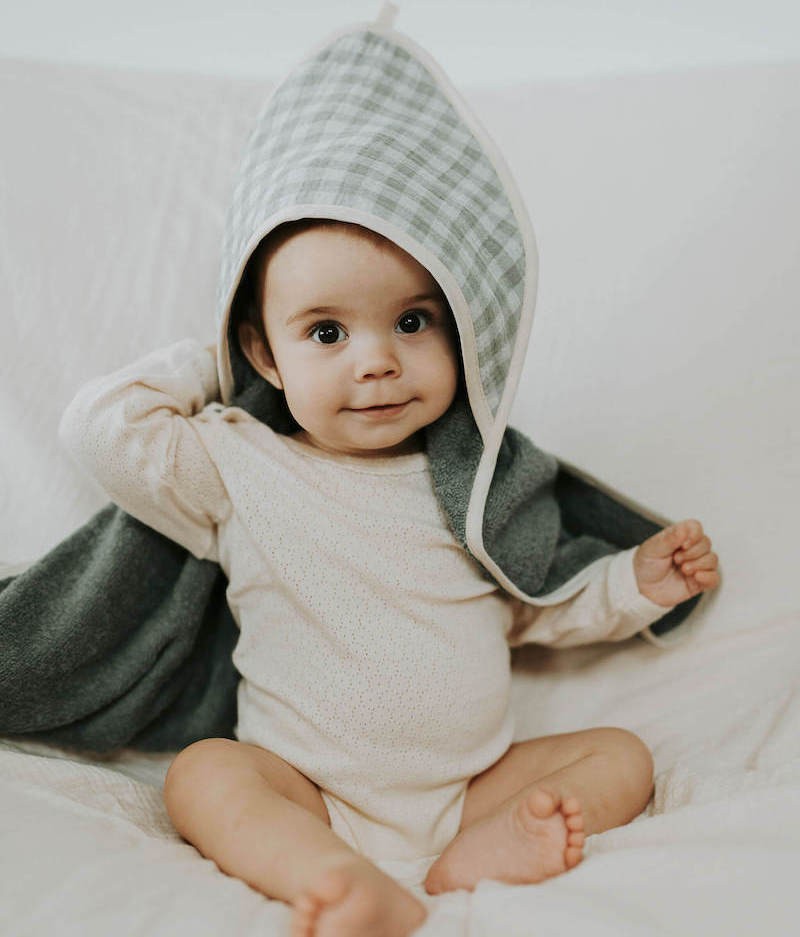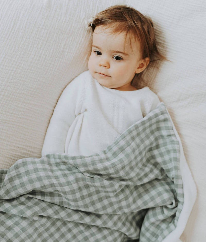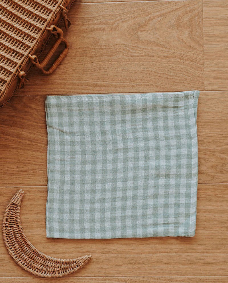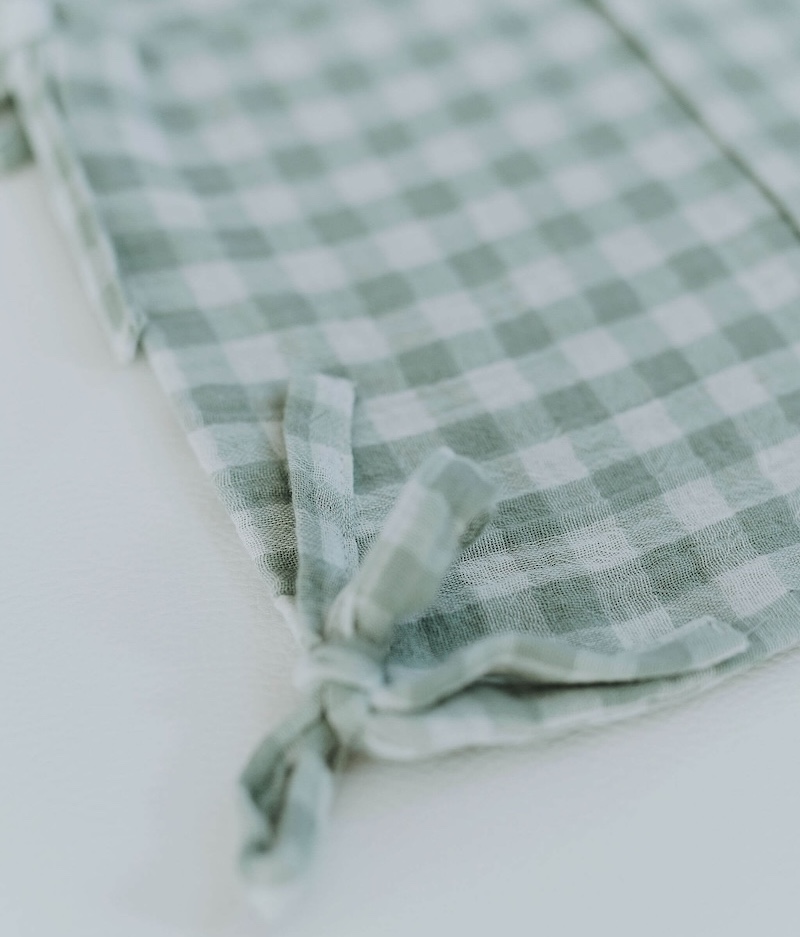 • Double gaze de coton vichy vert de gris certifiée sans substance nocive