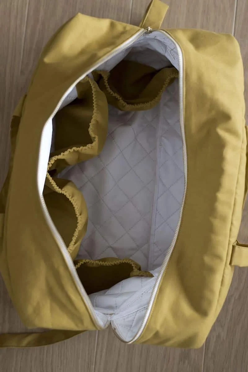 L’intérieur de notre sac à langer matelassé lui permet d’être totalement imperméable pour se prémunir de tout accident et lui assure une bonne tenue pour pouvoir facilement fouiller dedans.
