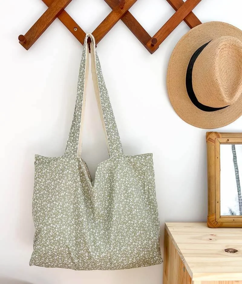 Notre Sac cabas mom-bag est totalement réversible : une face unie et l’autre face en joli coton résistant à motifs fleuris.