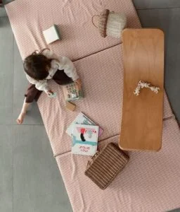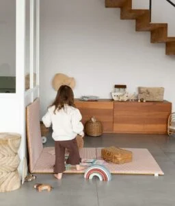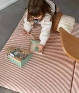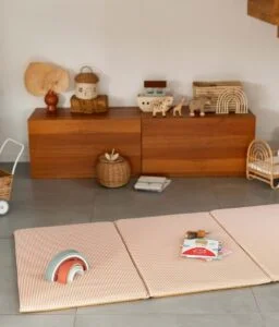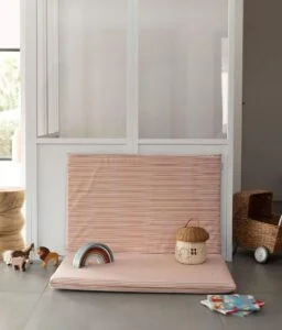 Très pratique, notre tapis de jeux bébé est déhoussable et lavable en machine. Les plaques de mousse à l’intérieur sont également recouvertes d’une alèse imperméable et peuvent aussi occasionnellement passer en machine lors d’un gros accident.