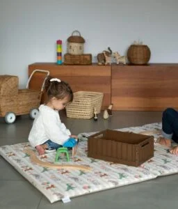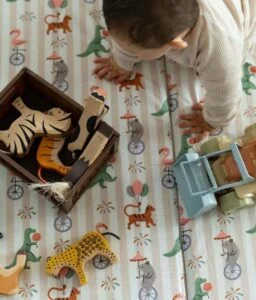 Très pratique, notre tapis de jeux bébé est déhoussable et lavable en machine. Les plaques de mousse à l’intérieur sont également recouvertes d’une alèse imperméable et peuvent aussi occasionnellement passer en machine lors d’un gros accident.