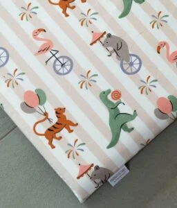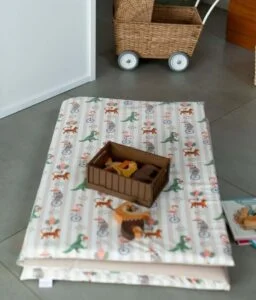 Une fois les activités terminées, il suffit de le retourner pour retrouver son coton imprimé tout doux pour des instants câlin ou lecture.